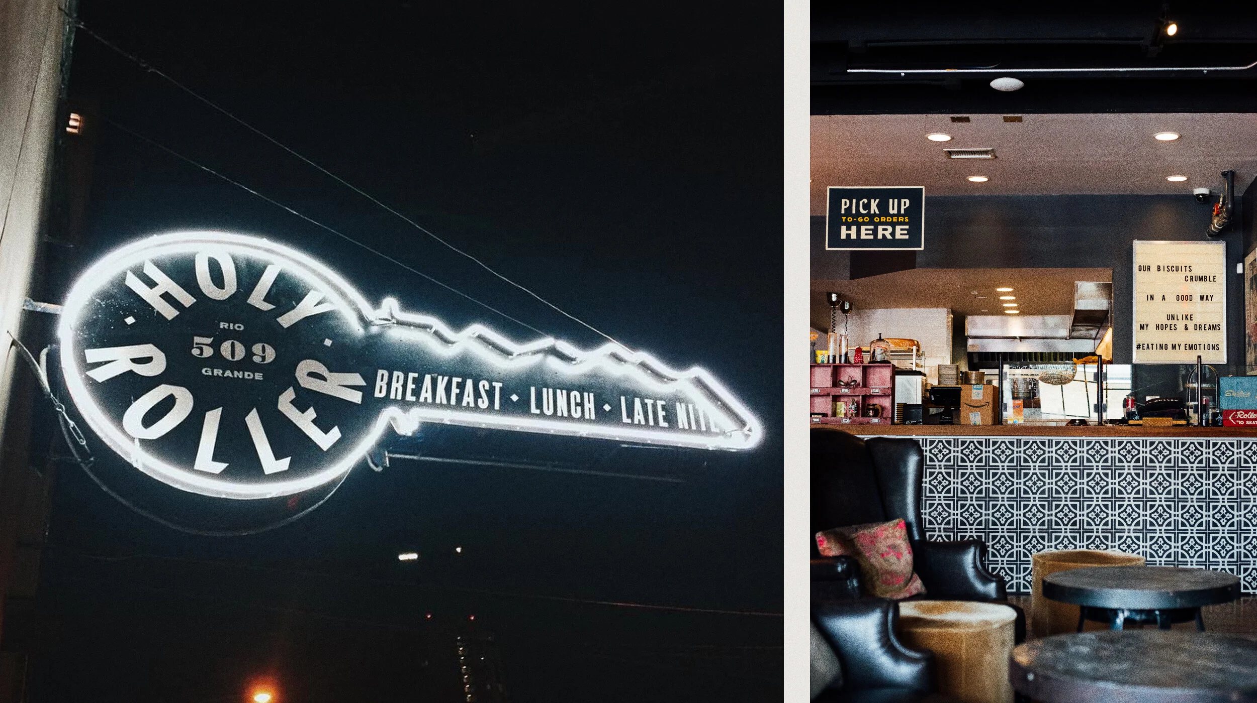 Inspired by the spirit of punk rock with a hint of religious kitsch, Holy Roller serves up a mishmash menu of nostalgic brunch-centric fare, while turning out fresh hot biscuits and pastries, mouthwatering egg dishes, sandwiches, stunning dinner plates, and devilish desserts.